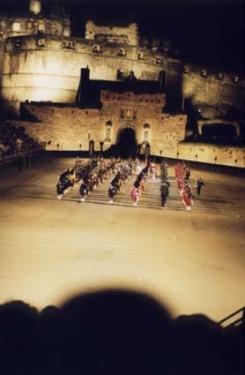 Und doch gibt es große Unterschiede: Während bei "Preußens Gloria" der Zapfenstreich als rein militärisches Ritual exekutiert wird, betrachten die Holländer ein Taptoe eher als Show - mit Marching Bands, spektakulären Effekten und allem Zipp und Zapp, der denkbar ist. Die Briten versuchen, zwischen diesen beiden Extremen die goldene Mitte einzuhalten: Hier halten sich militärisches Gepränge und Showeinlagen die Waage. Ich will versuchen, den Ablauf eines Tattoo am Beispiel des Edinburgh Military Tattoo zu beschreiben.