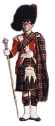 Für gewöhnlich steigt der Drum Major aus den Reihen der Trommler in diese Position auf, manchmal allerdings ist der Drum Major auch ein Piper. Oft tragen die Piper und Drummer einer Band unterschiedliche Uniformen, teilweise sogar unterschiedliches Tartan. Zum Beispiel sind die Kilts (org. „tunics") der Drummer traditionell rot in Anlehnung an die Uniformen englischer Regimenter, während die Piper solche in „archer green" (Bogenschützen Grün) in der Tradition schottischer Regimenter tragen. Der Drum Major wird die gleiche Uniform wie die Drummer tragen, ergänzt durch einige „Extras", und es ist dem Drum Major gestattet, ein Sgian Dubh („Schwarzer Dolch" siehe Dress) in der rechten „Hose" (Socke) zu tragen wie die Piper. In militärischen Bands trägt der Drum Major den Rang eines Warrant Officer und entsprechend ein Offiziersschwert.