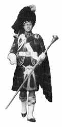 Der Drum Major ist der Kopf der Band - während der Parade. Eine imposante Erscheinung. wie er so vor der Band hergeht: Fehlerloser Drill und makellose Uniform. Der Drum Major trägt ein Mace (org. „ceremonial mace"- zeremonielle Keule = Tambourstab), in Militärbands zudem eine Schärpe mit den wichtigsten Kriegsauszeichnungen des Regimentes (org. „Battle Honours").