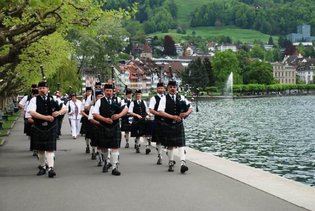 us: Zum vierten Mal in St.Ursen und das erste Mal als aktive Band im Wettbewerb (Competition), haben wir mit einem mehr als nur respektablen Resultat abgeschlossen. Darauf sind wir stolz. Leider war das Wetter am Samstag recht kühl, der Boden schlammig. Trotzdem konnten wir wieder den Gedankenaustausch mit den vielen Bands pflegen. Die Stimmung war sehr herzlich. Der Sonntag zeigte sich von der besten Seite. Das erste Mal hat auch ein Mitglied unserer Band an der Solopipe-Competition (Wettbewerb) teilgenommen. Eine rundum gelungene Sache. Wir freuen uns bereits auf das nächste Jahr!