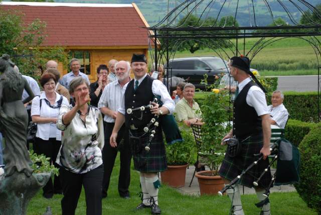 us: Beim Kollerhaus gab es heute etwas zu feiern. Im wunderschönen Rosengarten zu spielen und der Mutter unseres Pipers Daniel zu gratulieren, war ein schöner Anlass. Wir wünschen Heidi alles Gute und ein gelungenes Fest.