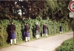Diese Frage scheint - aus welchen Gründen auch immer - doch viele Menschen zu beschäftigen. Kaum ein Auftritt vergeht, ohne dass diese Frage einem Kilt-Träger gestellt wird, kaum ein Auftritt, bei dem nicht die unsinnigsten Verrenkungen beobachtet werden bei dem Versuch, einen Blick auf nackte Tatsachen zu werfen. Die Forschungsgruppe UTK ("Under The Kilt") will an dieser Stelle die jeweils aktuellen Forschungsergebnisse dem interessierten Publikum vorstellen, und zwar um ernsthaften Verletzungen des Publikums (Hexenschuss, Nackenzerrung etc.) vorzubeugen. Hierbei soll der Schleier des Geheimnisses gerade so weit gelüftet werden, dass Phantasie und Traum nicht völlig auf der Strecke bleiben.